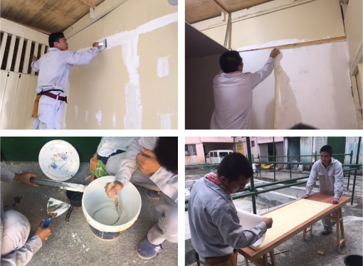 漆喰やモルタルのこね方、小手の使い方、仕上がりの良い塗り方など、左官に必要な技術・知識を学ぶコースです。来日前にしっかりと基礎を学ぶことで、専門性の高い左官作業でも実習生が戸惑うことなく現場に入っていくことが可能です。