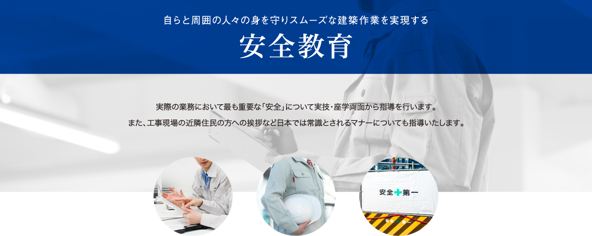 研修で教える分野を問わず「技能研修」「座学研修」「安全教育」を行なっています。