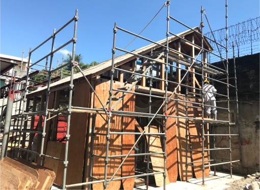 木造軸組工法(在来工法)の教育をメインとした研修コースです。木造住宅を1棟建てながら、工具の扱い方・木材の加工の仕方・柱や梁などを用いた木造住宅の建て方を学びます。ラックスマン グローバルワークスの研修の中でも、特に需要が高いコースであり、これまで多くの修了生を日本へと送り出しています。